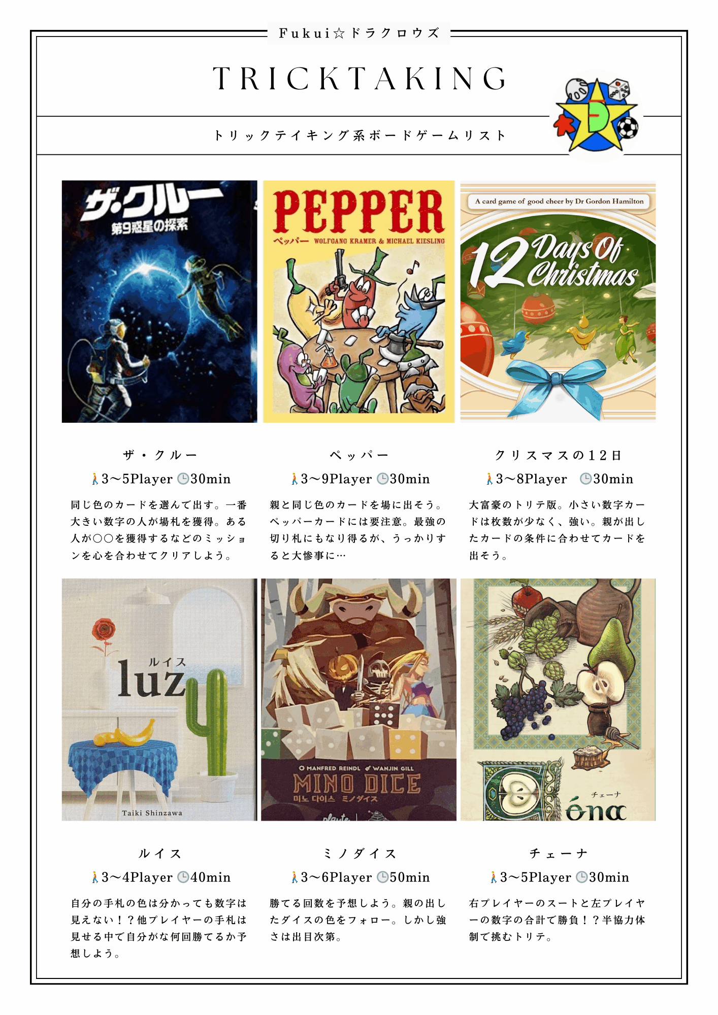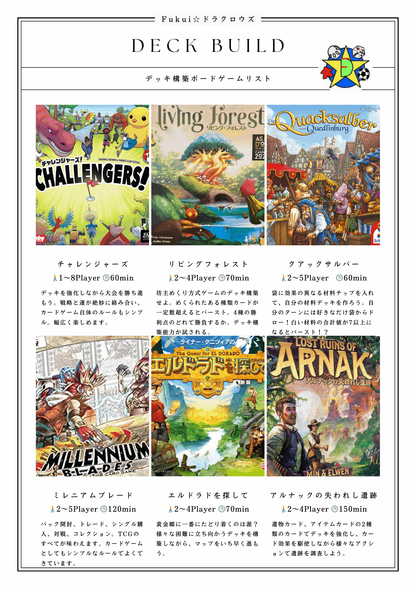 - ドラクロウズで楽しめるボードゲームリスト