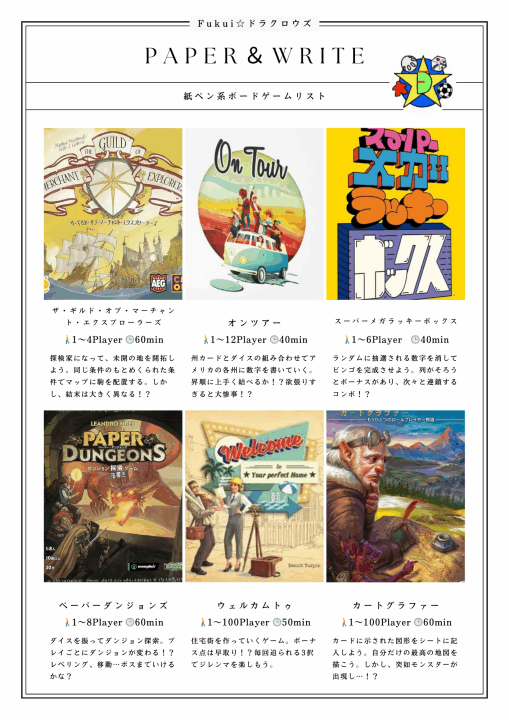 ドラクロウズで楽しめるボードゲームリスト