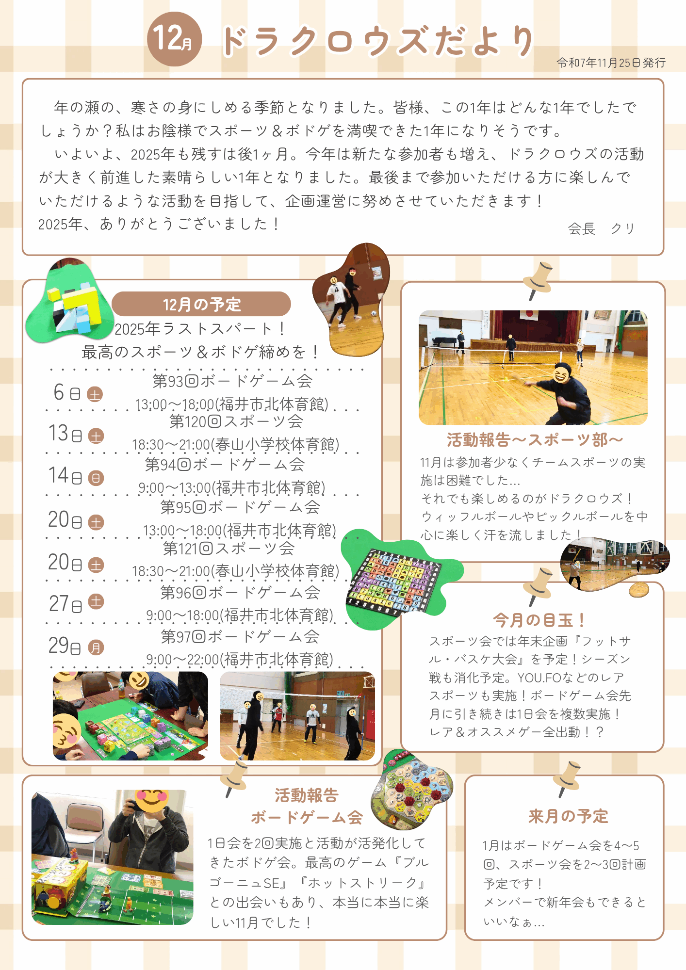 ◯12/13(土)18:30〜21:00春山ドラクロウズ第120回活動