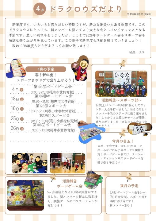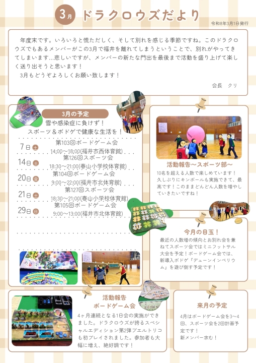 活動予定*月刊ドラクロウズだより*