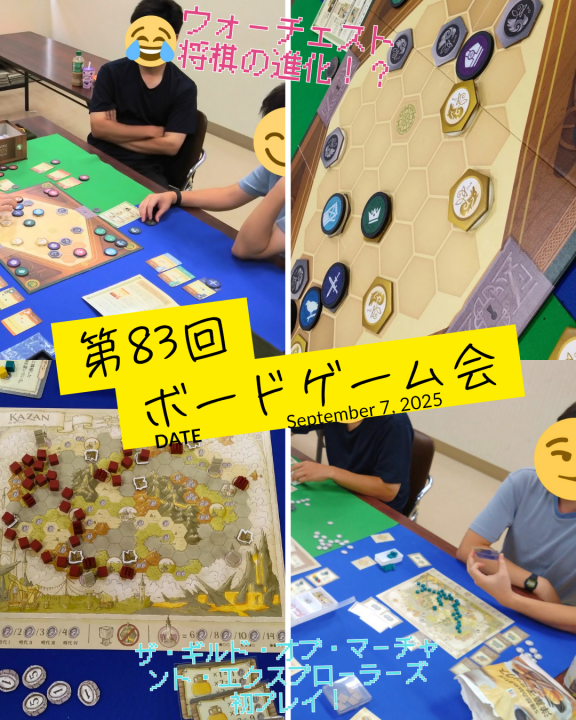 4名と少ない人数での活動となりましたが、『ウォーチェスト』と『ザ・ギルド・オブ・マーチャント・エクスプローラーズ』の2つのボドゲを楽しみました!