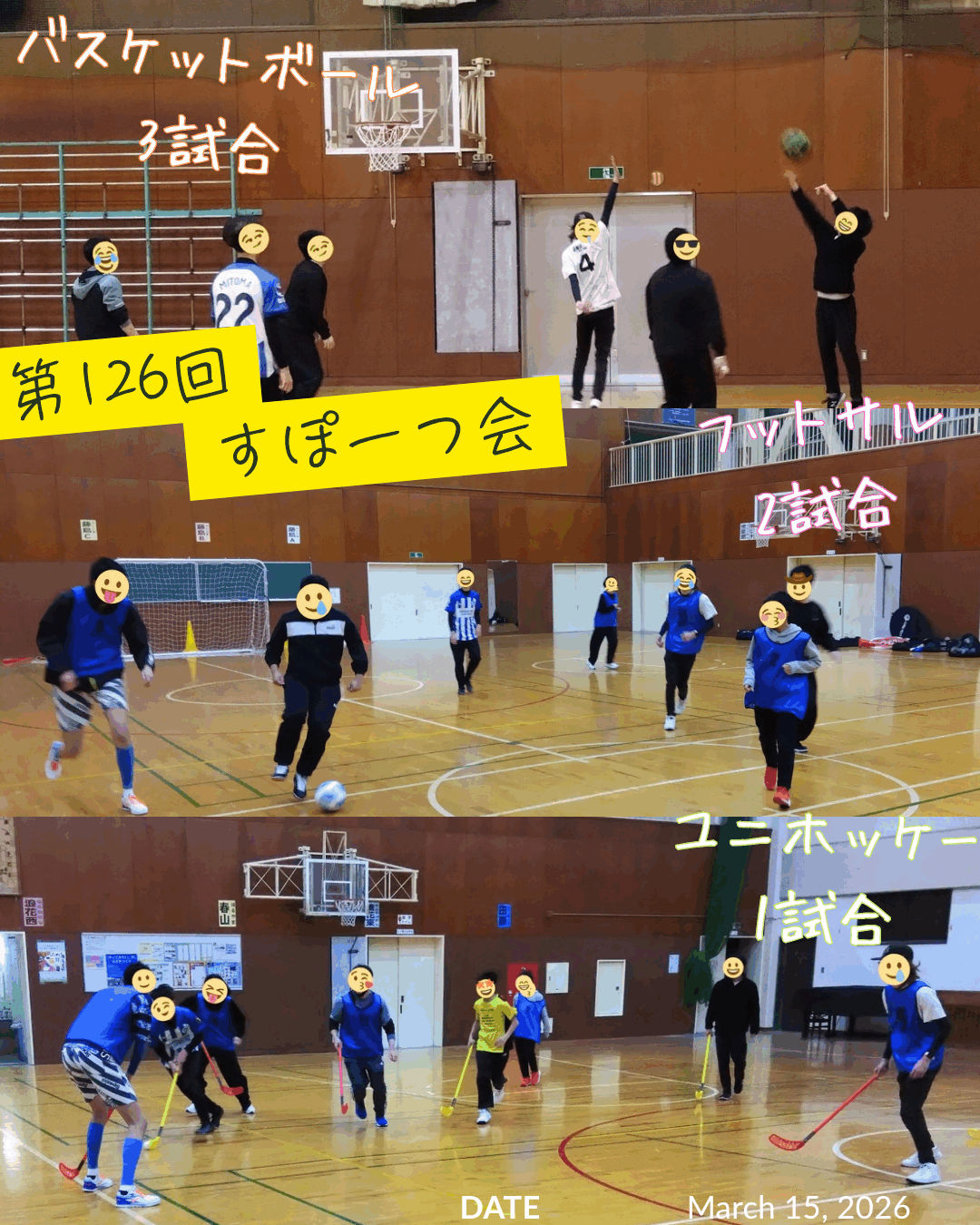 最初から体育館全体が使えた日ということもあって、バスケやフットサル、ユニホッケー、そしてキンボールといったチームスポーツを満喫しました!
